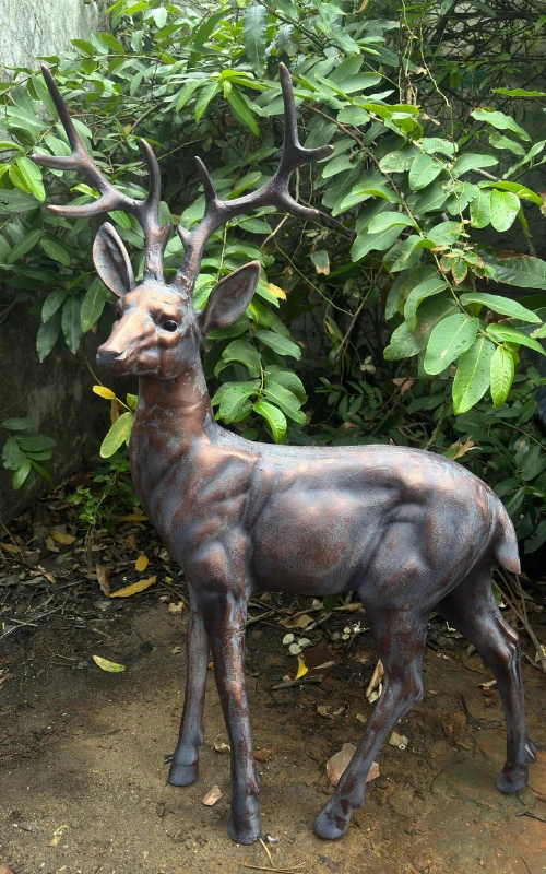 Crafted with unmatched precision, this 1-meter-high Stag Sculpture embodies elegance and strength. Made from high-grade aluminum, it is layered with our exclusive 9-step antique bronze finish — a signature process developed in-house that brings depth, richness, and character to every curve. This piece is more than decor — it’s a sculptural statement of fine artistry, where each layer adds dimensional beauty and texture. With its expressive stance and timeless patina, it effortlessly elevates any garden or landscape setting, becoming a centerpiece of natural grace and artistic craftsmanship.